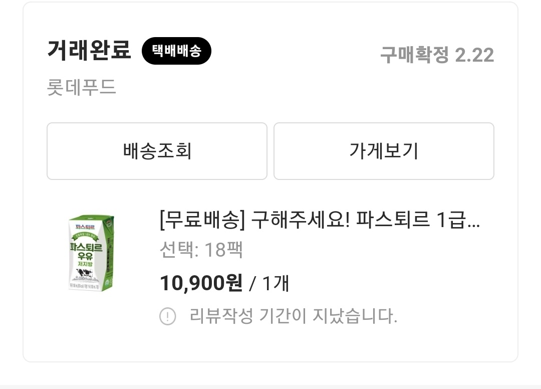 롯데푸드 저지방우유 파스퇴르